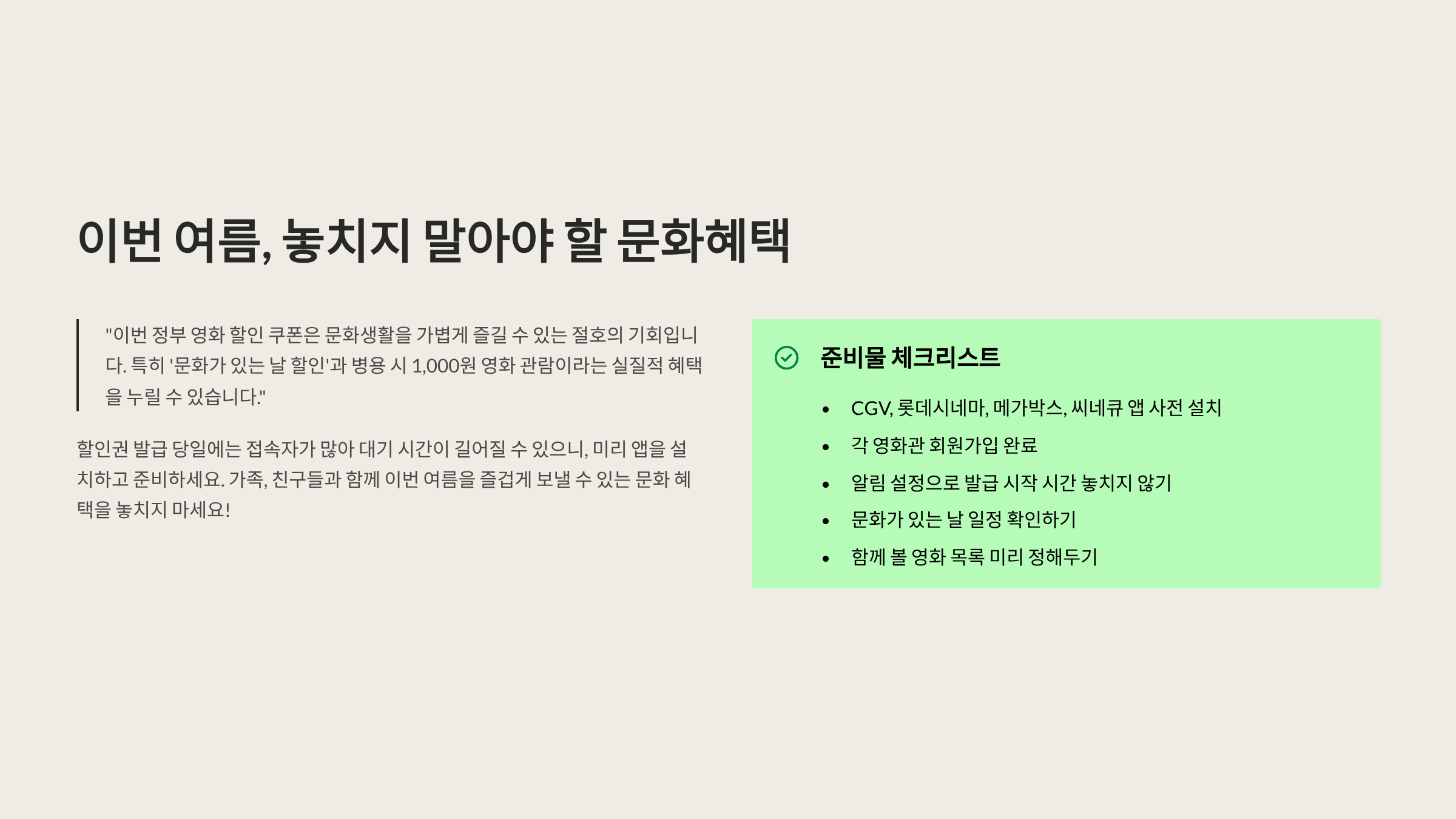 🎬 결론: 이번 여름, 반드시 챙겨야 할 문화혜택