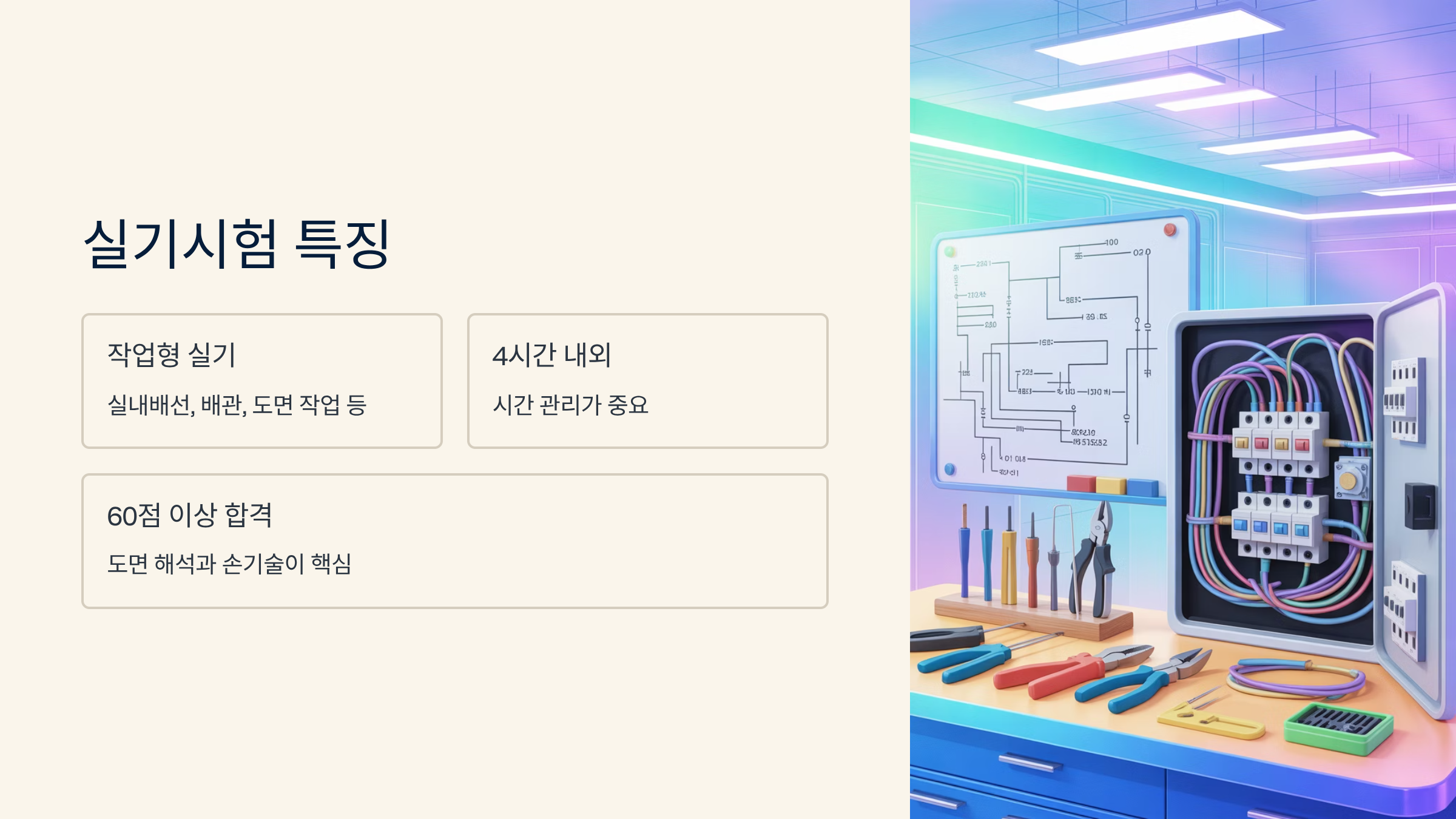 도면 해석 능력과 손기술이 중요하며, 실습 경험이 있는 수험생에게 유리해요. 실기 학원이나 실습 키트 등을 통해 미리 손에 익히는 것이 핵심이에요.