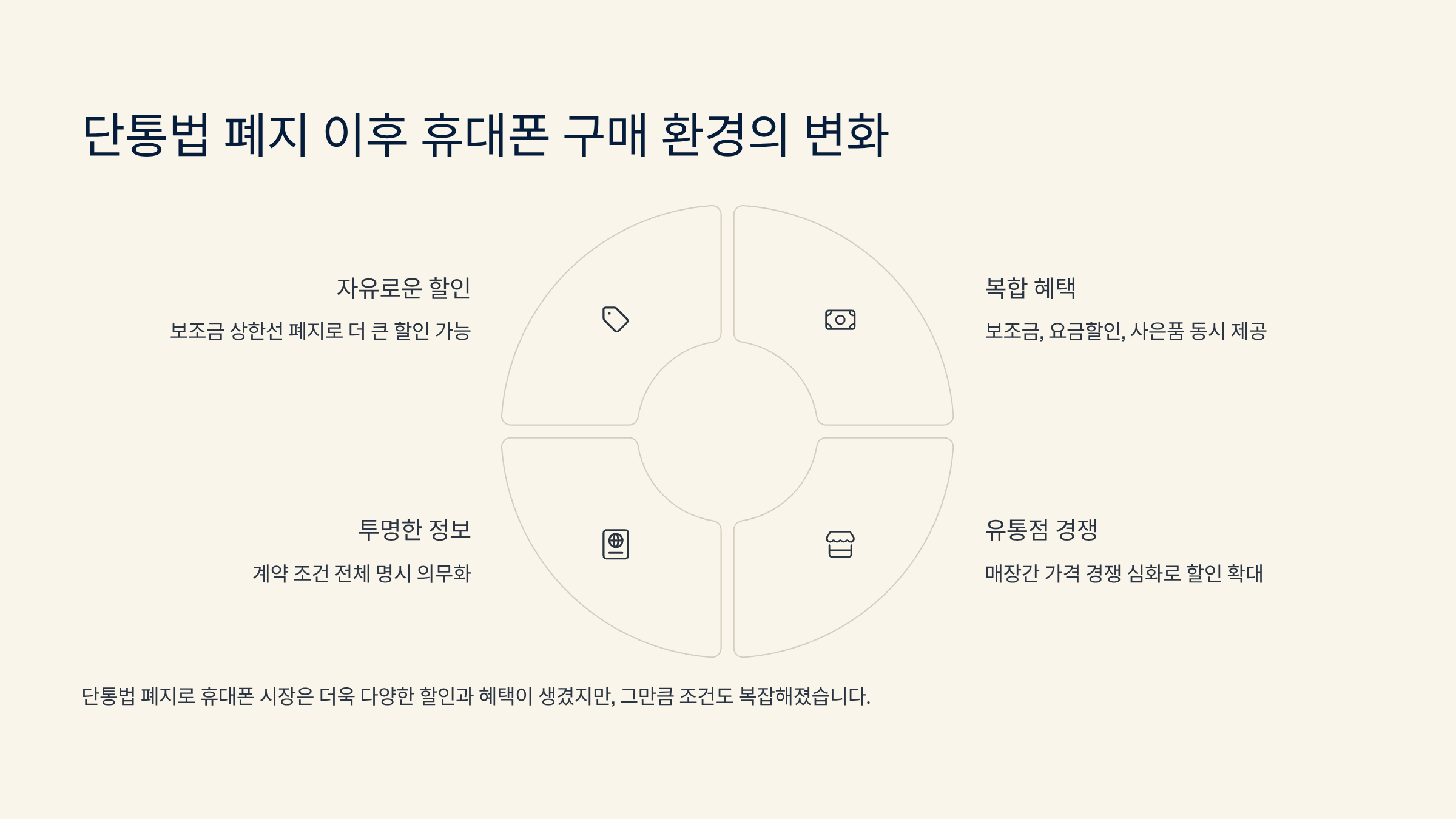 단통법 폐지는 단말기 보조금, 요금제 할인, 유통점 혜택이 모두 자율화됐다는 뜻이에요. 기존보다 훨씬 다양한 할인 조합이 가능해졌죠.