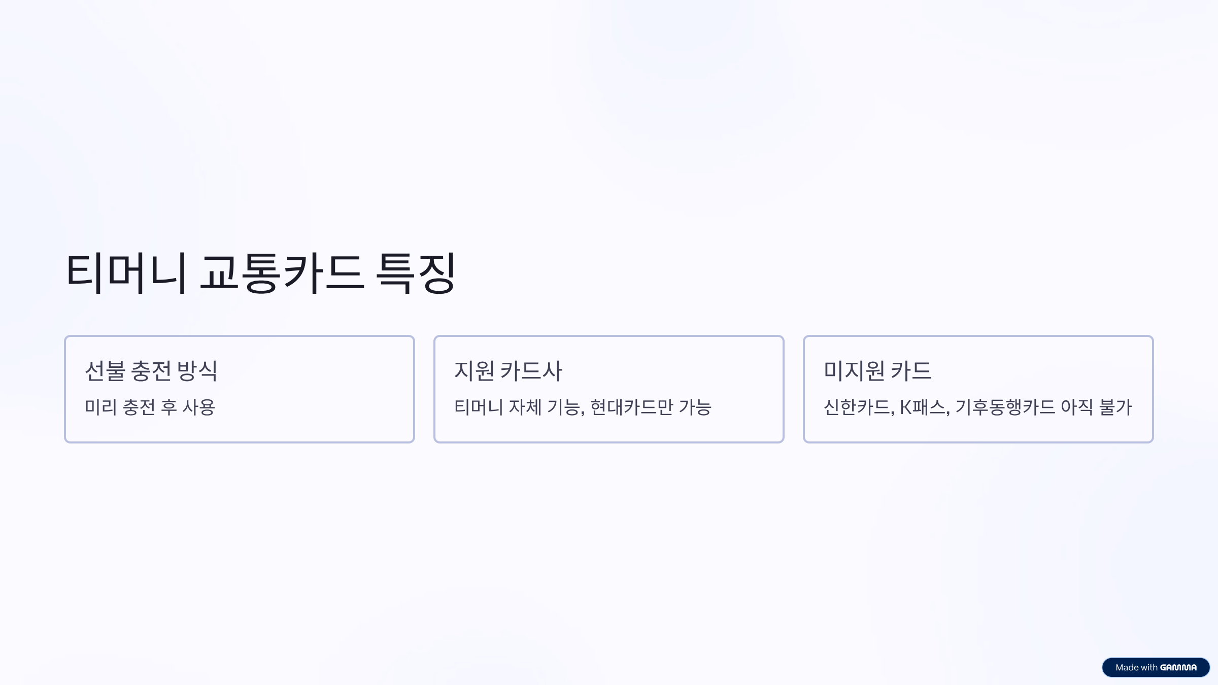 현재는 티머니 자체 기능과 현대카드 사용자에 한해 등록이 가능하며, 신한카드나 다른 카드사는 아직 지원하지 않아요.