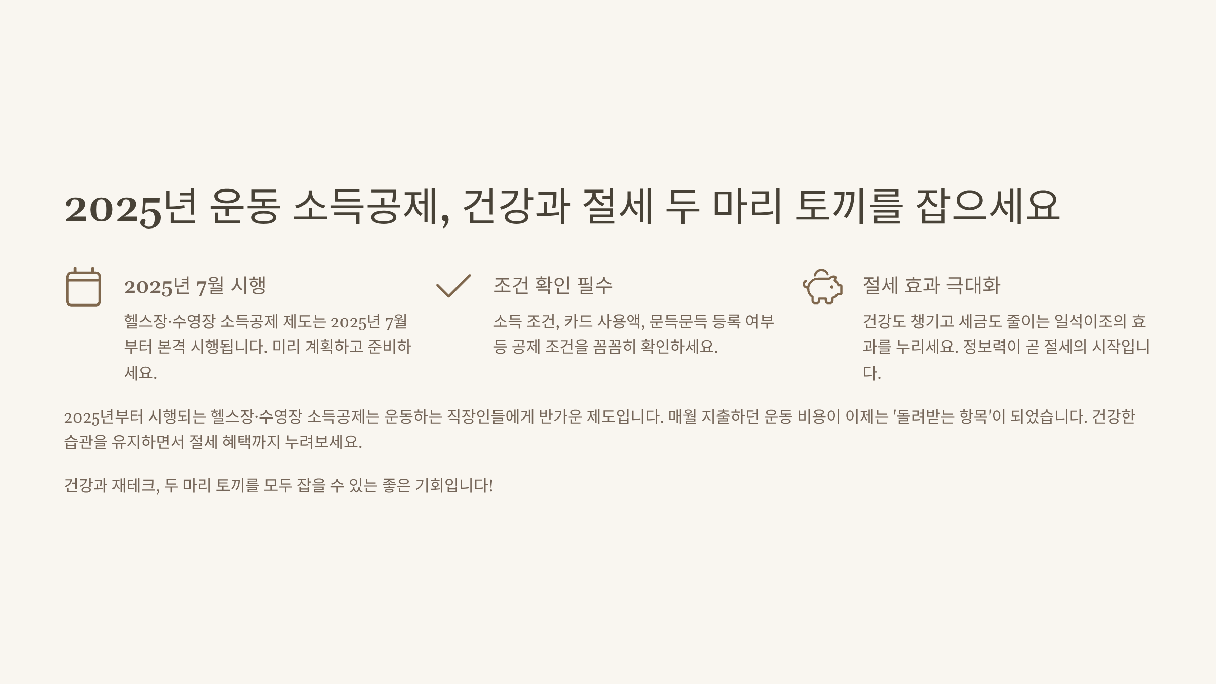 2025년 7월부터 헬스장 수영장 소득공제 제도가 시행되면서, 연말정산에 실질적인 절세 효과를 줄 수 있게 되었어요.