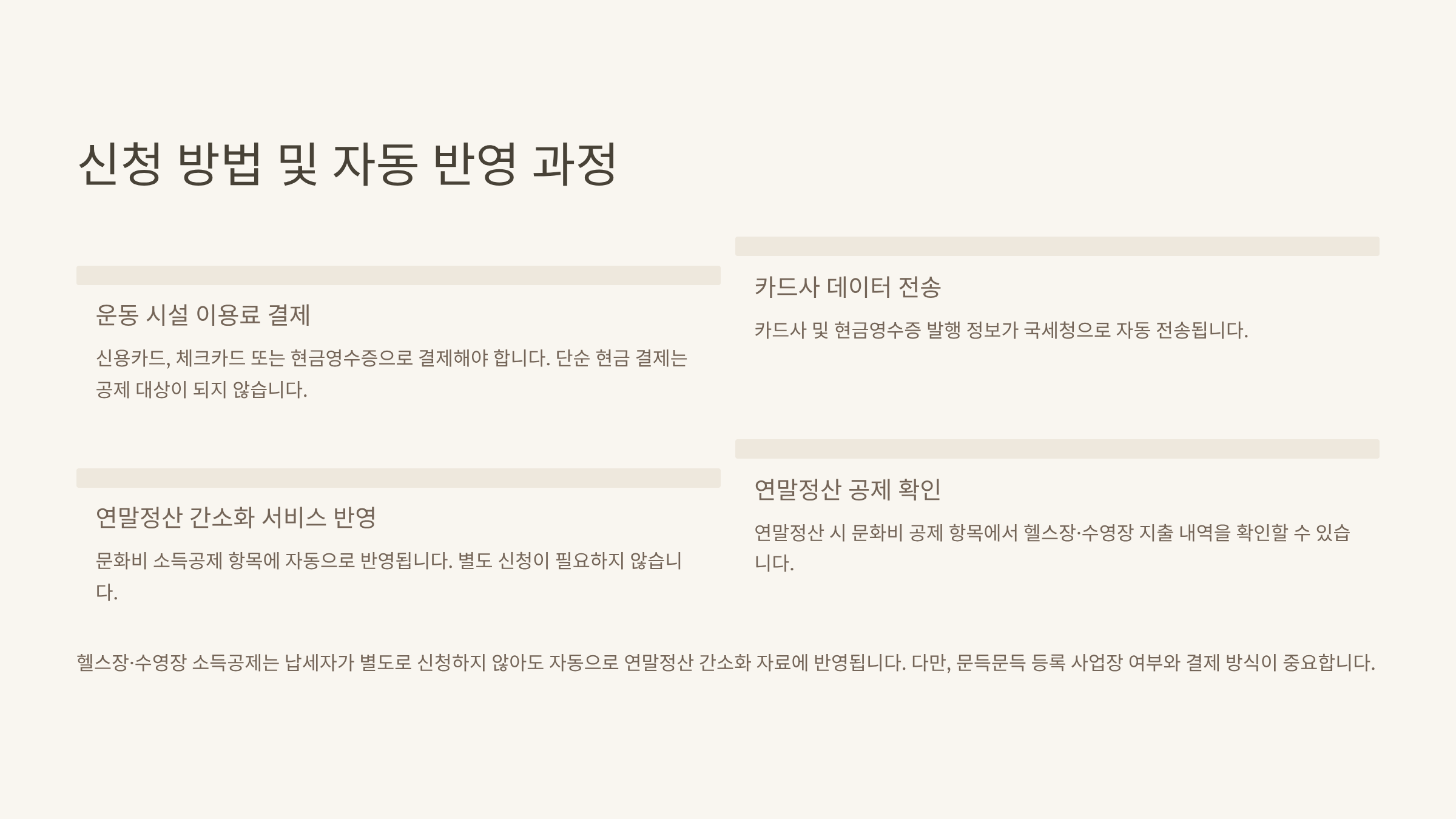헬스장 수영장 소득공제는 사용자가 신용카드·체크카드 또는 현금영수증으로 결제만 하면