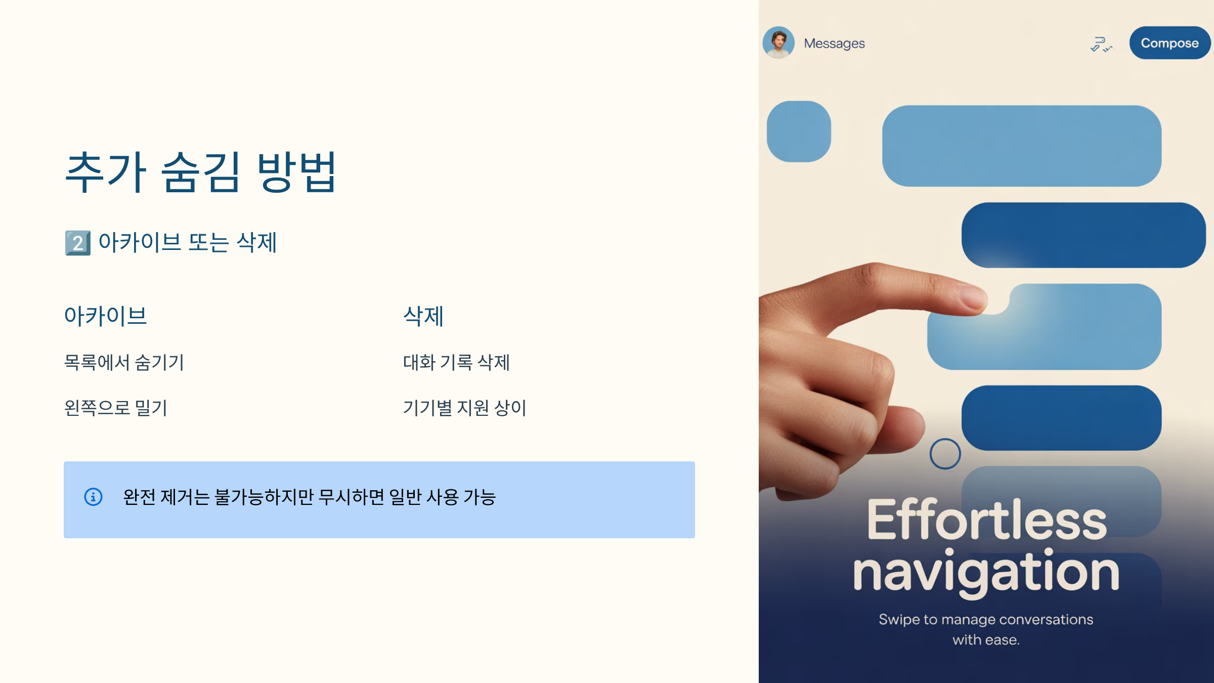 - AI 챗방에 메시지 남아 있다면 ‘아카이브’ 혹은 ‘삭제’로 숨기기