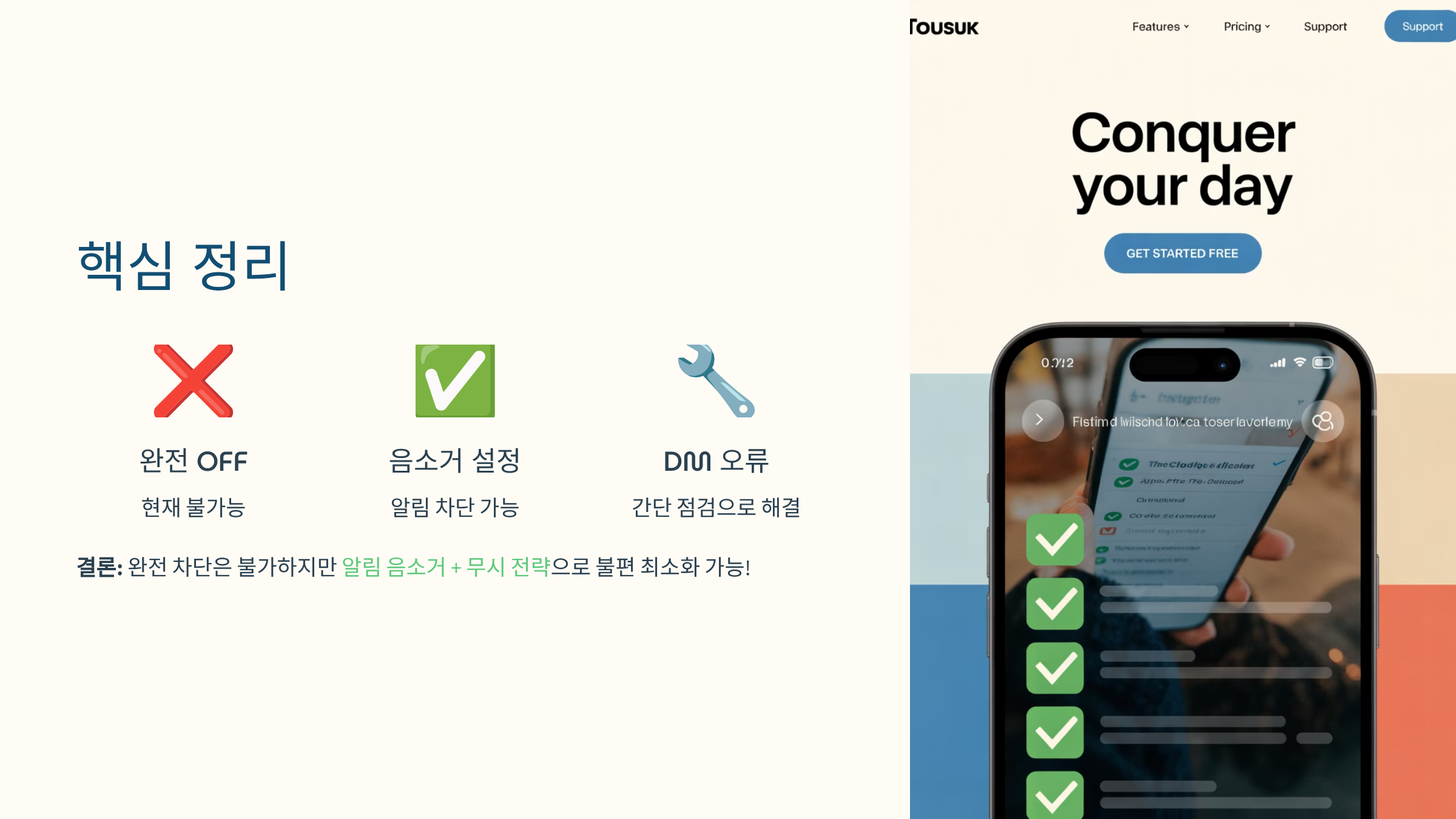 - “알림 음소거(Mute Notifications)” 켜기