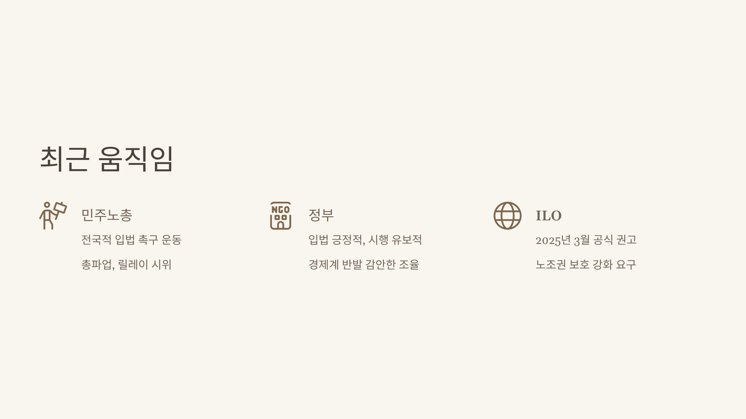 - ILO: 2025년 3월, 한국 정부에 ‘노조권 보호 강화’를 직접 권고