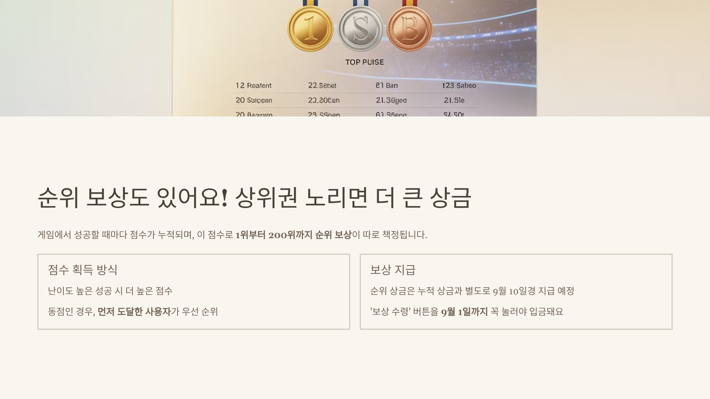 성공 시 점수가 누적되고, 누적 점수에 따라 순위 보상도 따로 주어집니다. - 참여 대상