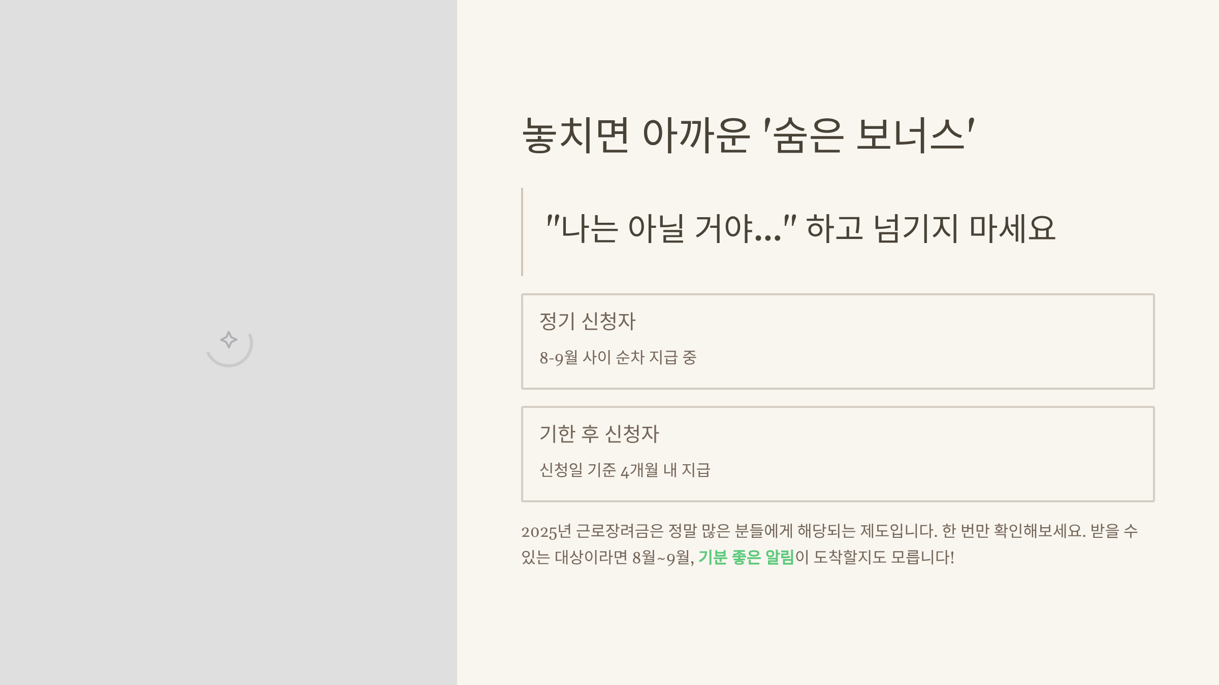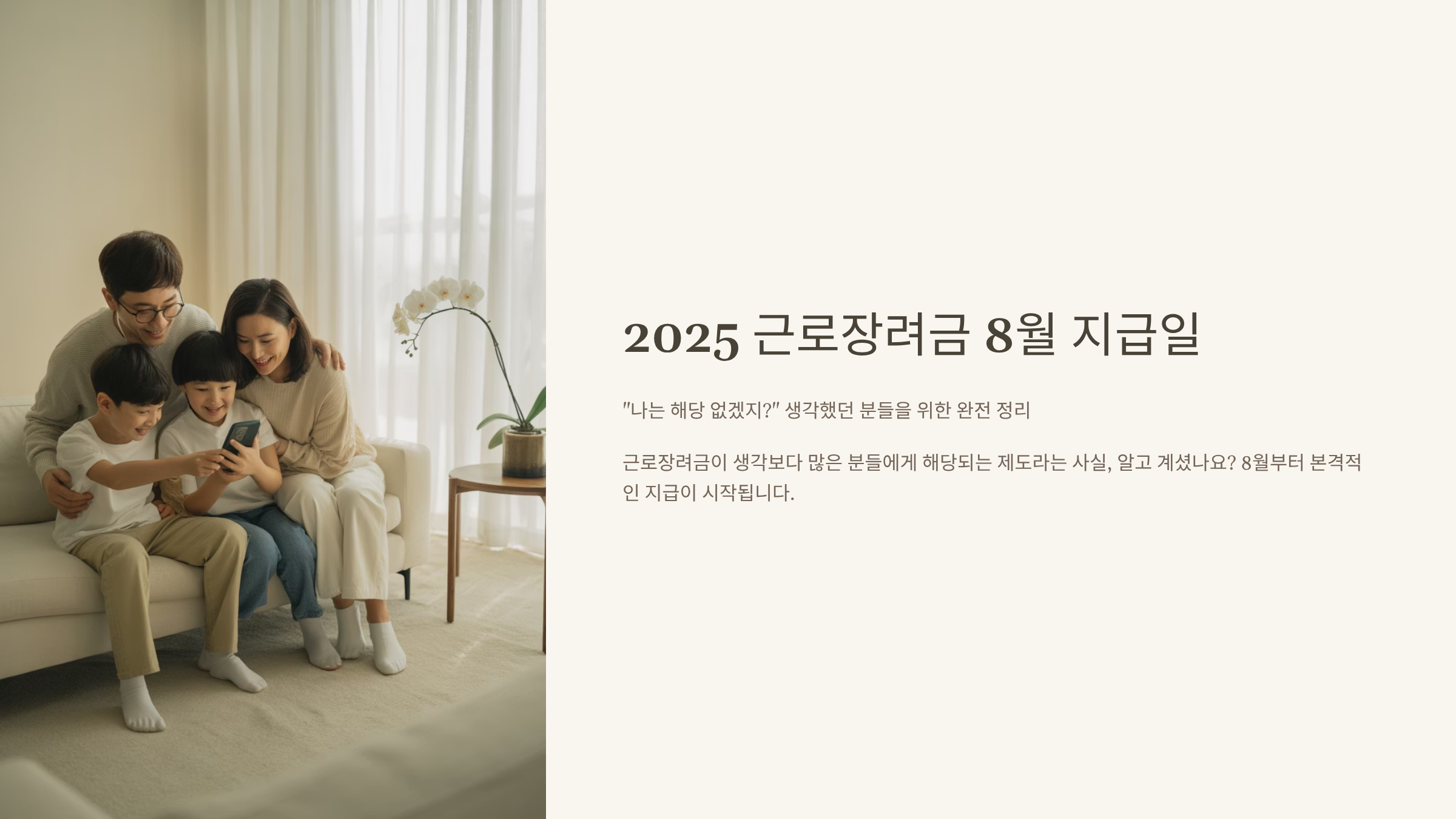 2025 근로장려금 8월 지급일, ‘나는 해당 없겠지?’ 생각했던 분들 꼭 보세요!