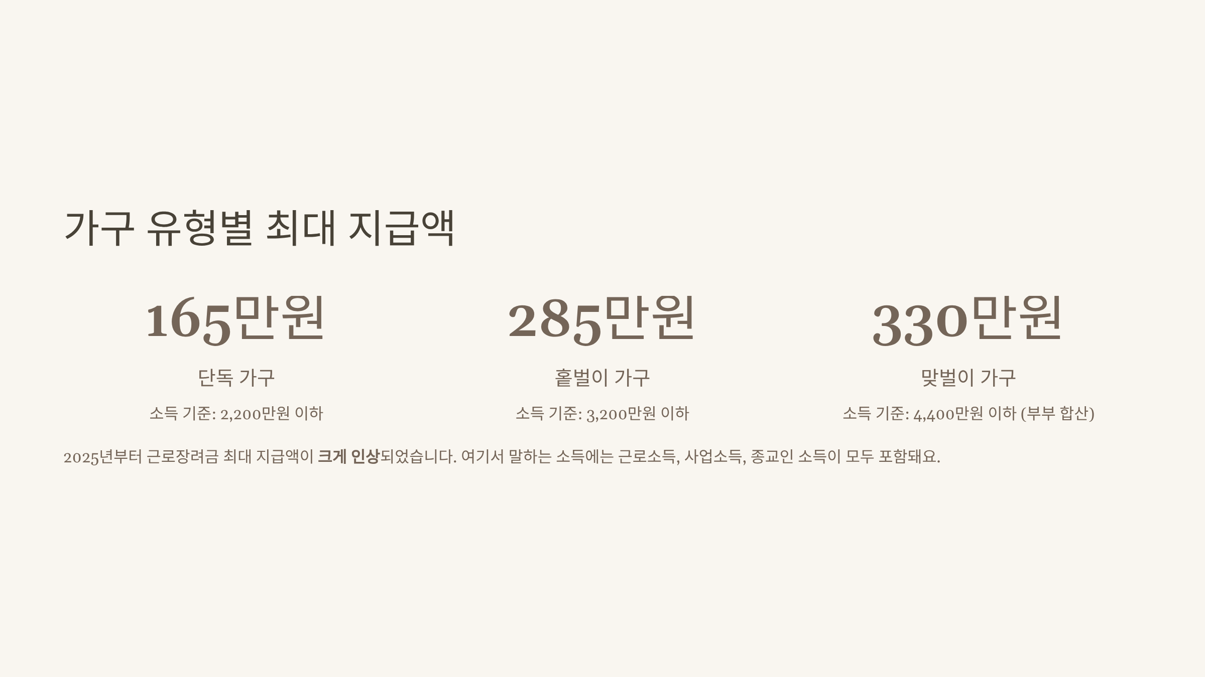 2025년부터 근로장려금 최대 지급액이 크게 인상됐습니다.
