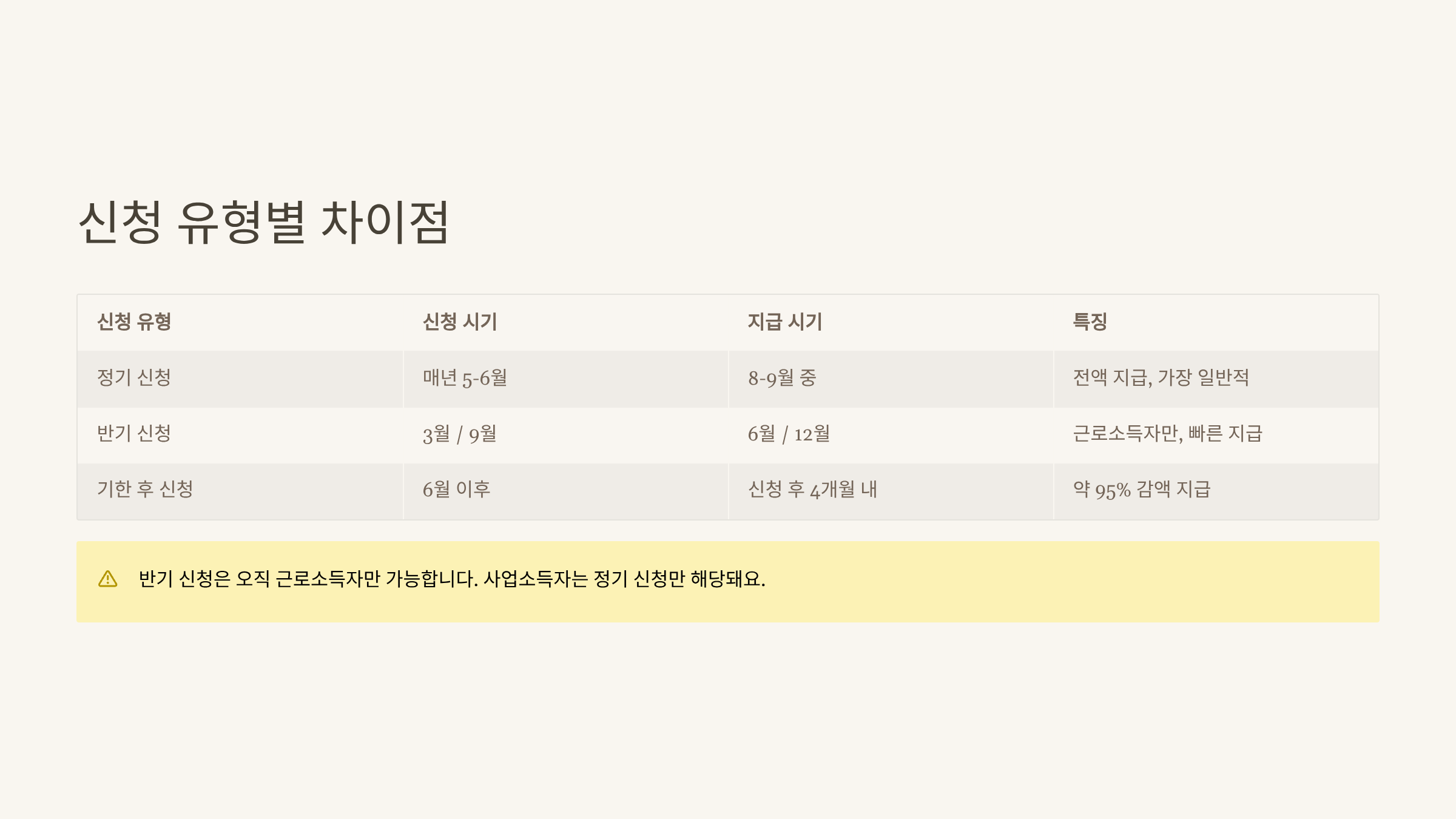 ✔ 근로소득자는 반기 신청도 가능 (빠른 수령)