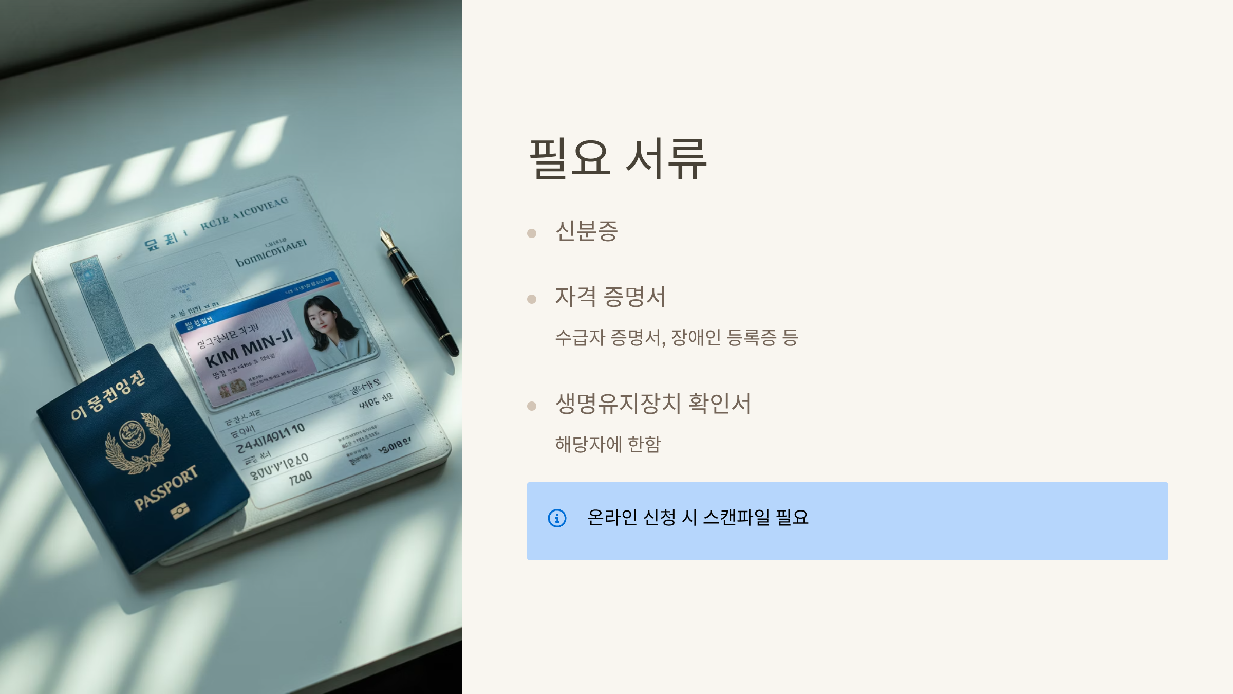 신청 전에는 반드시 본인의 자격 요건과 필요 서류를 준비해 주세요.