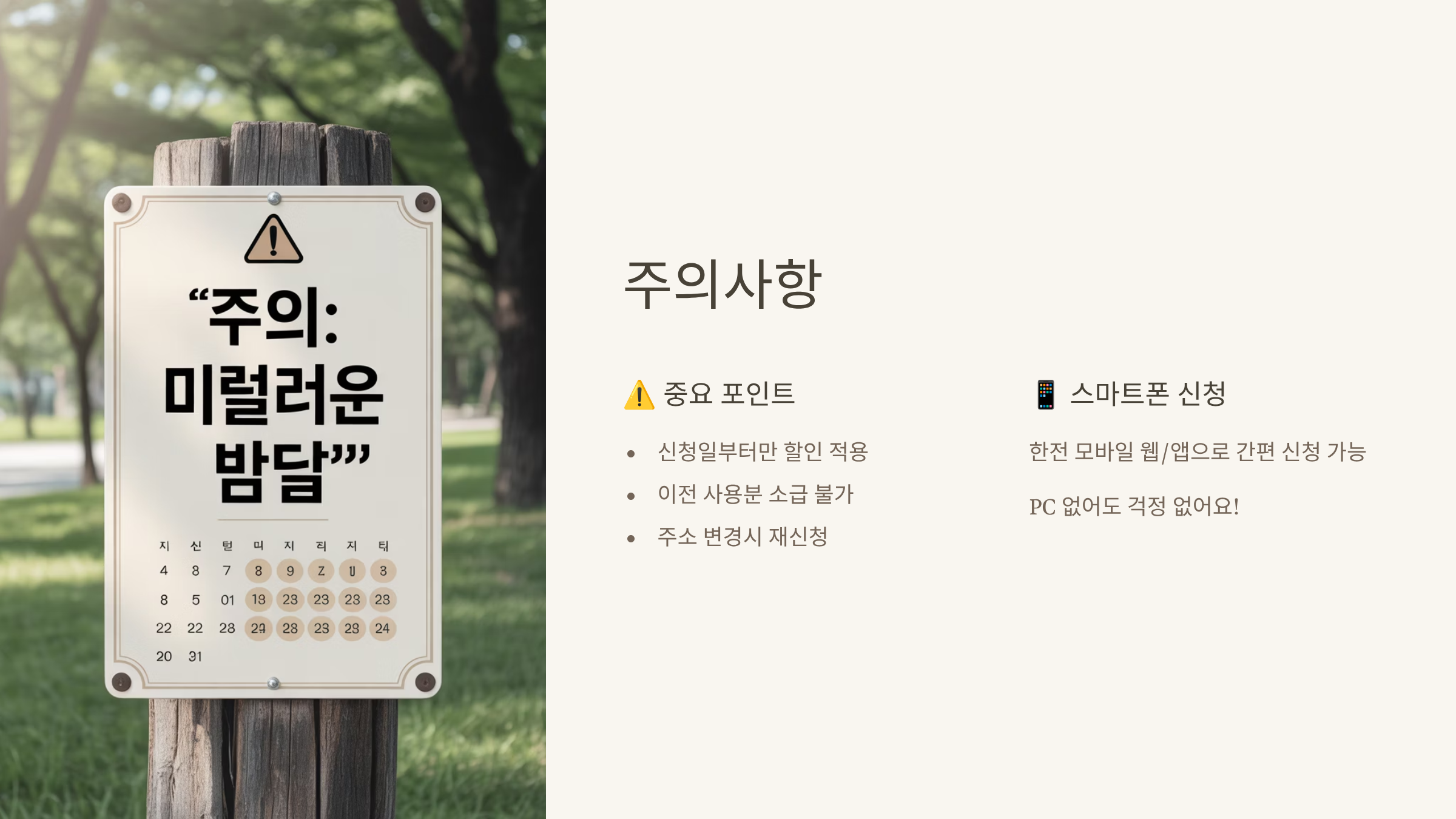 전기요금 할인은 몇 가지 유의할 점이 있어요. 아래 내용을 꼭 참고해 주세요.