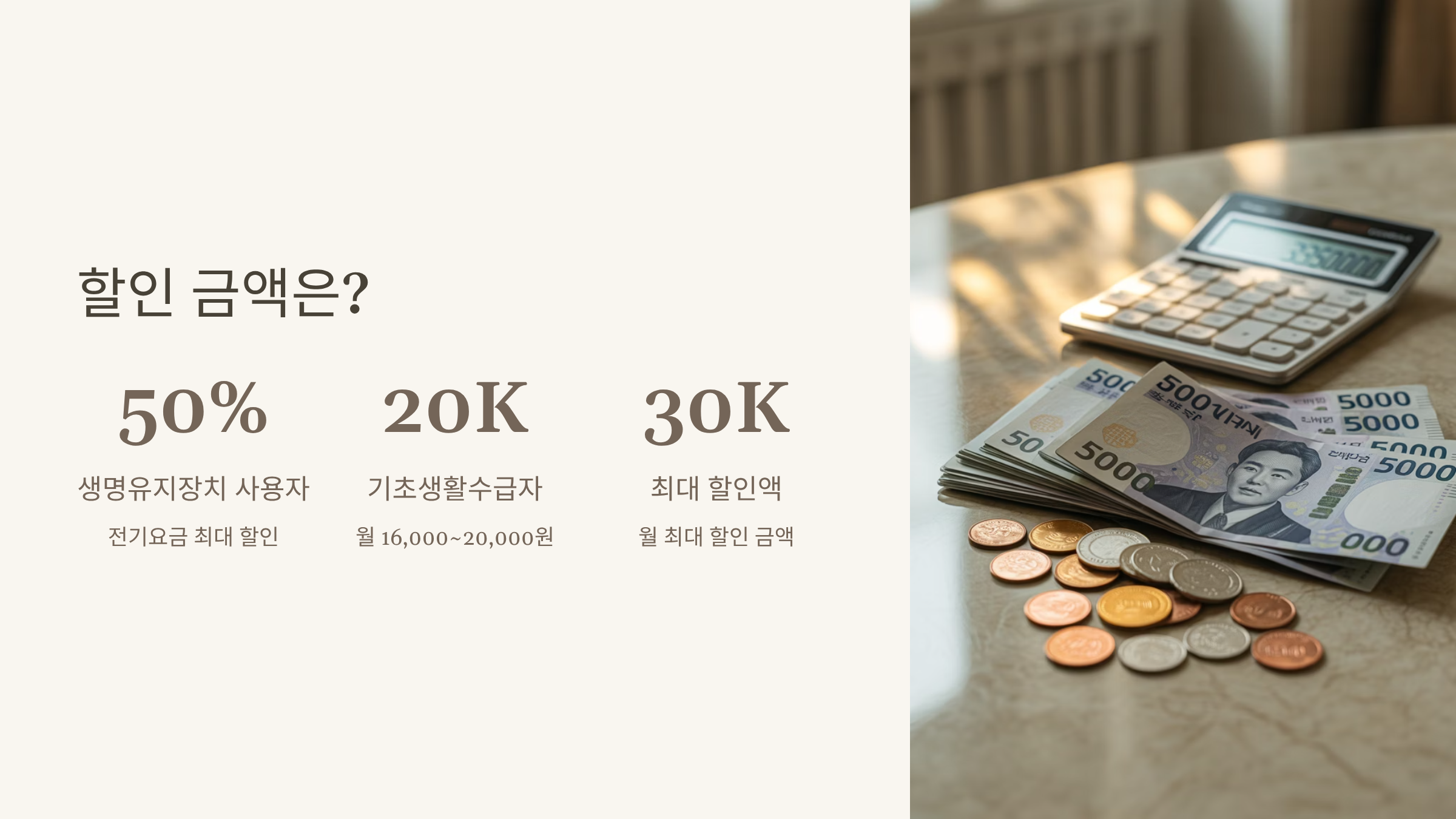 - 생명유지장치 사용자: 전기요금의 최대 50%까지 할인
