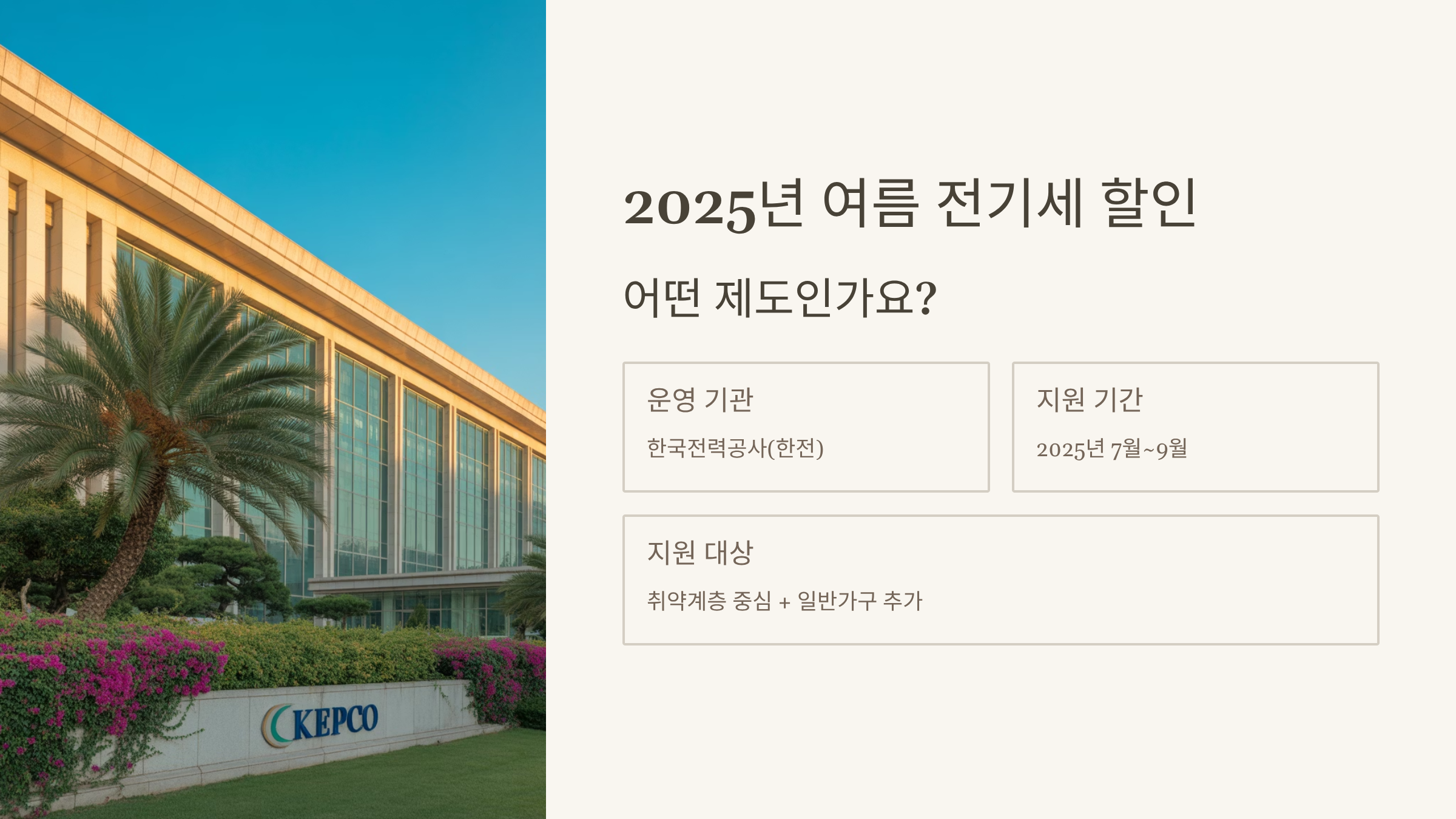 2025년 여름에는 한전에서 전기요금 할인 혜택을 한시적으로 운영하고 있다는 사실! 대상자만 잘 확인하고 신청하면, 최대 3만 원까지 전기요금이 절약될 수 있어요.