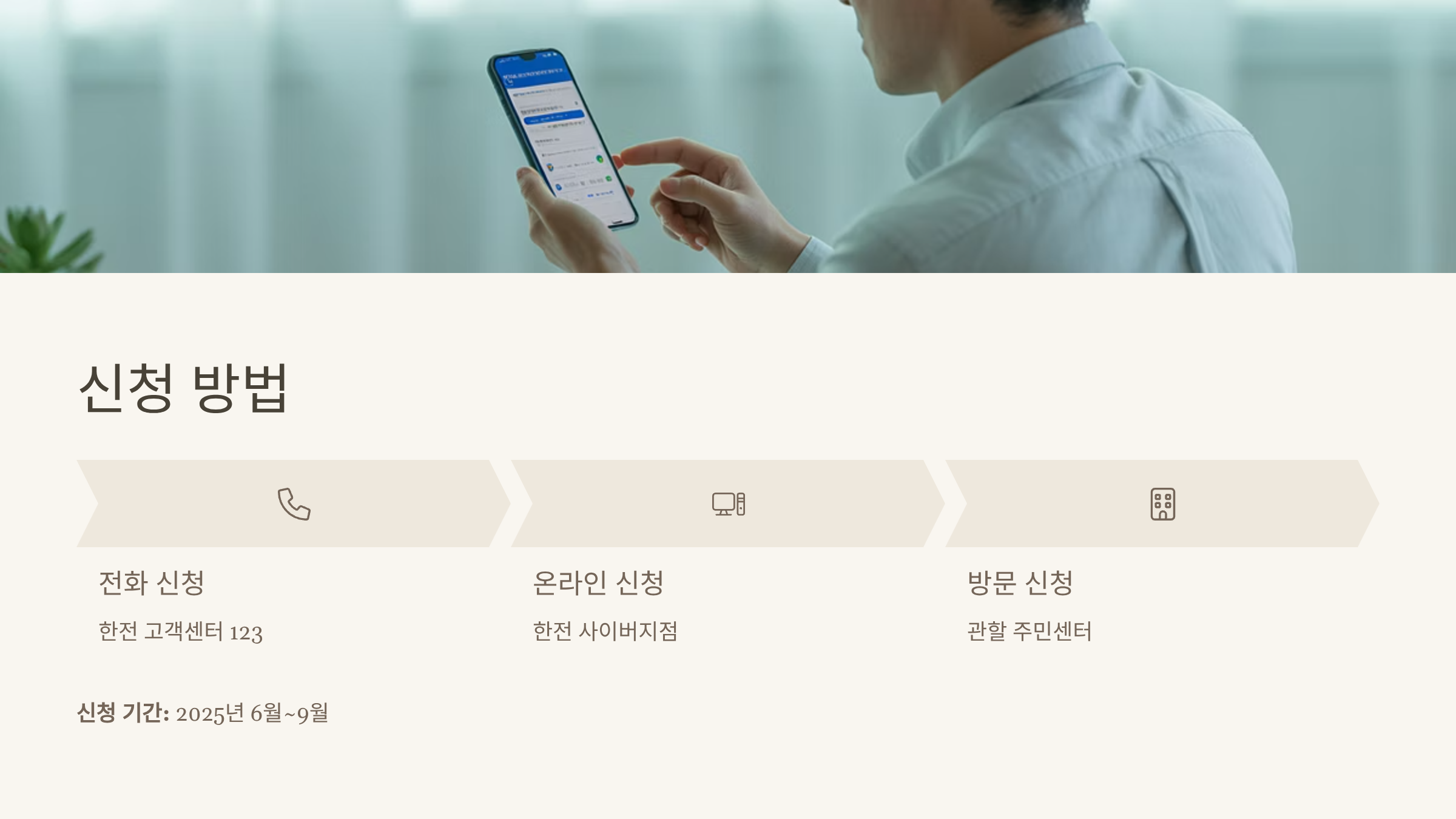 - 한전 고객센터(국번없이 123) 에 전화해 상담 후 신청