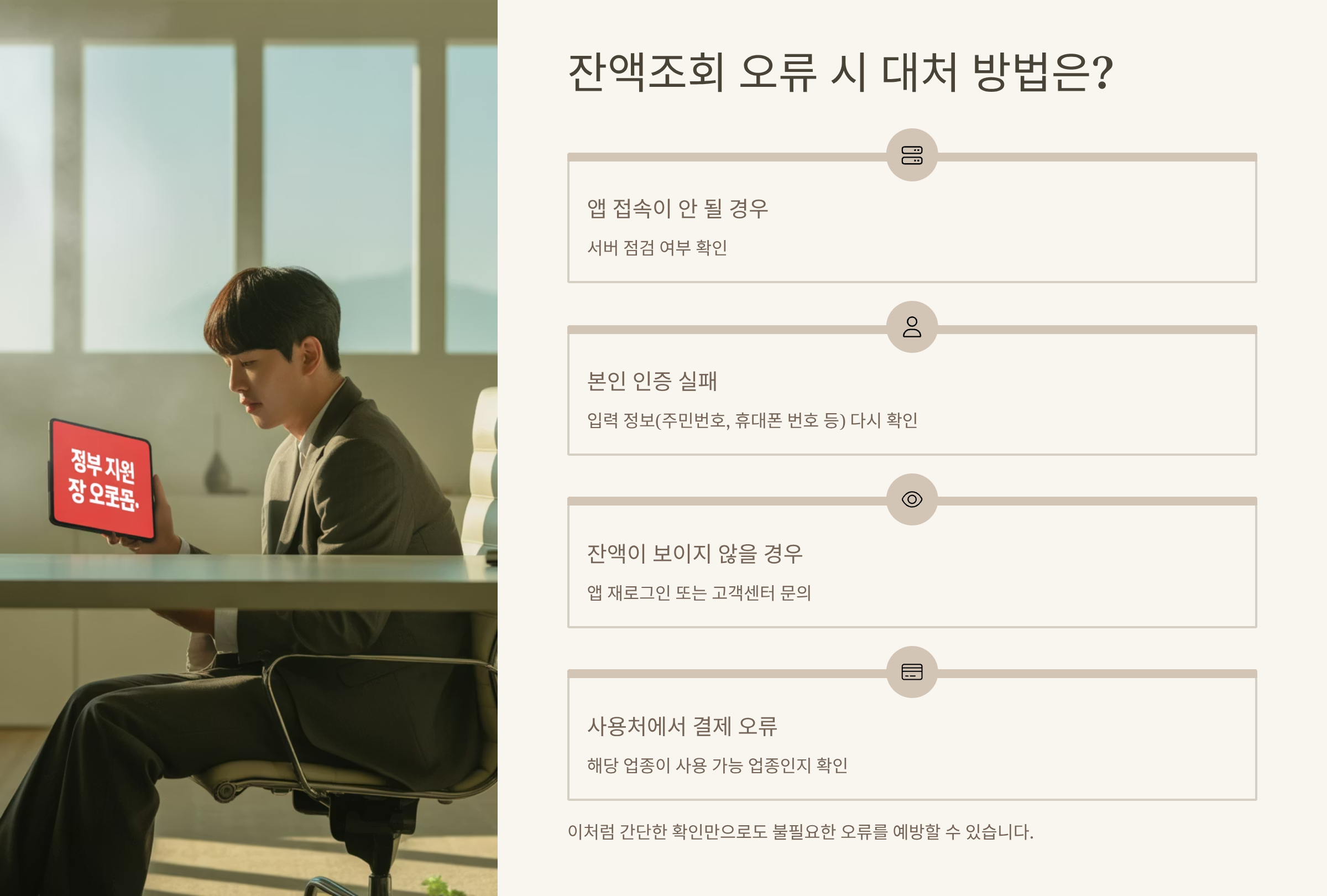 - 사용처에서 결제 오류 → 해당 업종이 사용 가능 업종인지 확인