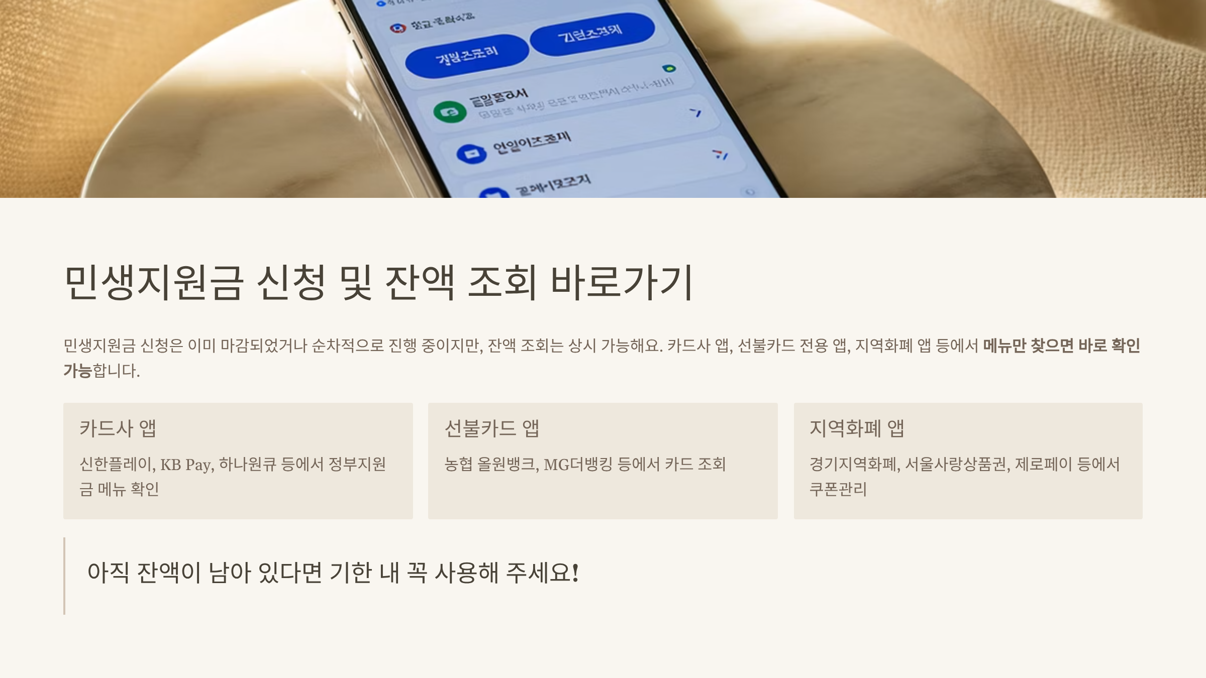 2025년 민생지원금, 아직 다 쓰지 않으셨다면 지금 바로 잔액조회 해보시는 게 좋습니다.