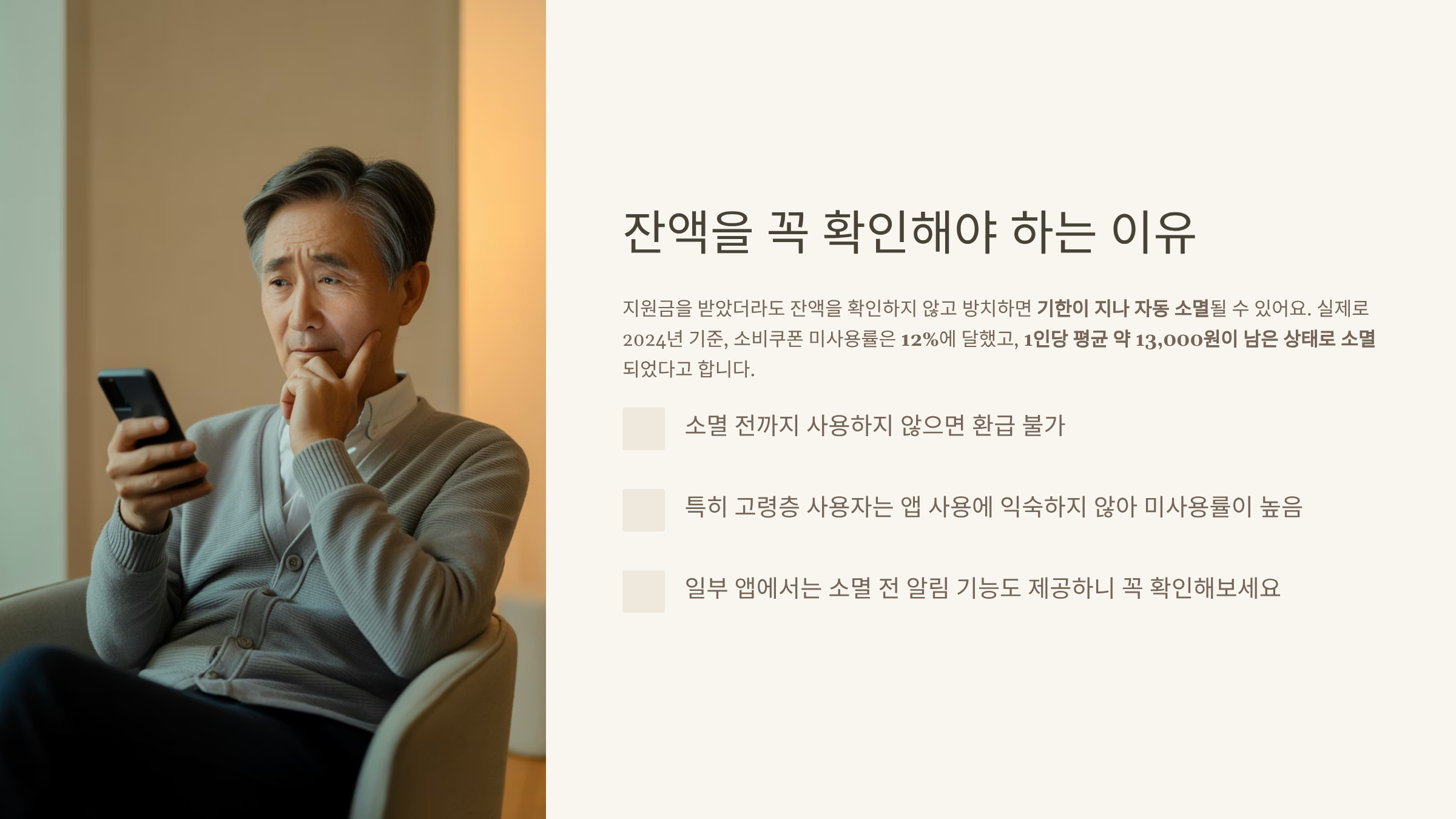 지원금을 받았더라도 잔액을 확인하지 않고 방치하면 기한이 지나 자동 소멸될 수 있어요.