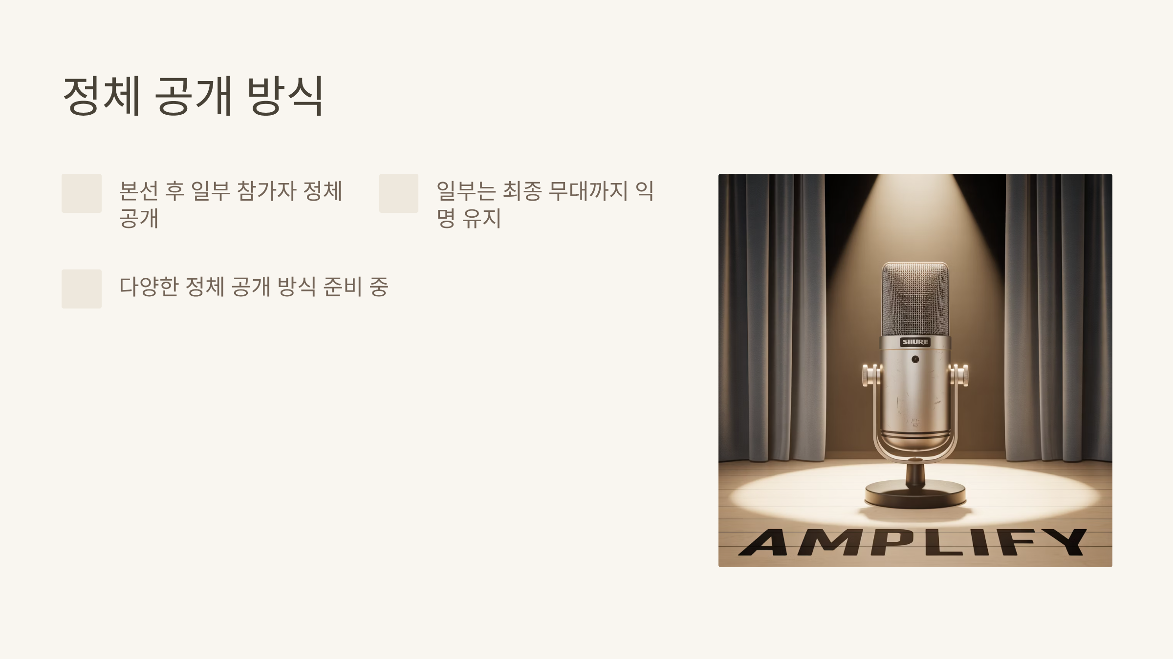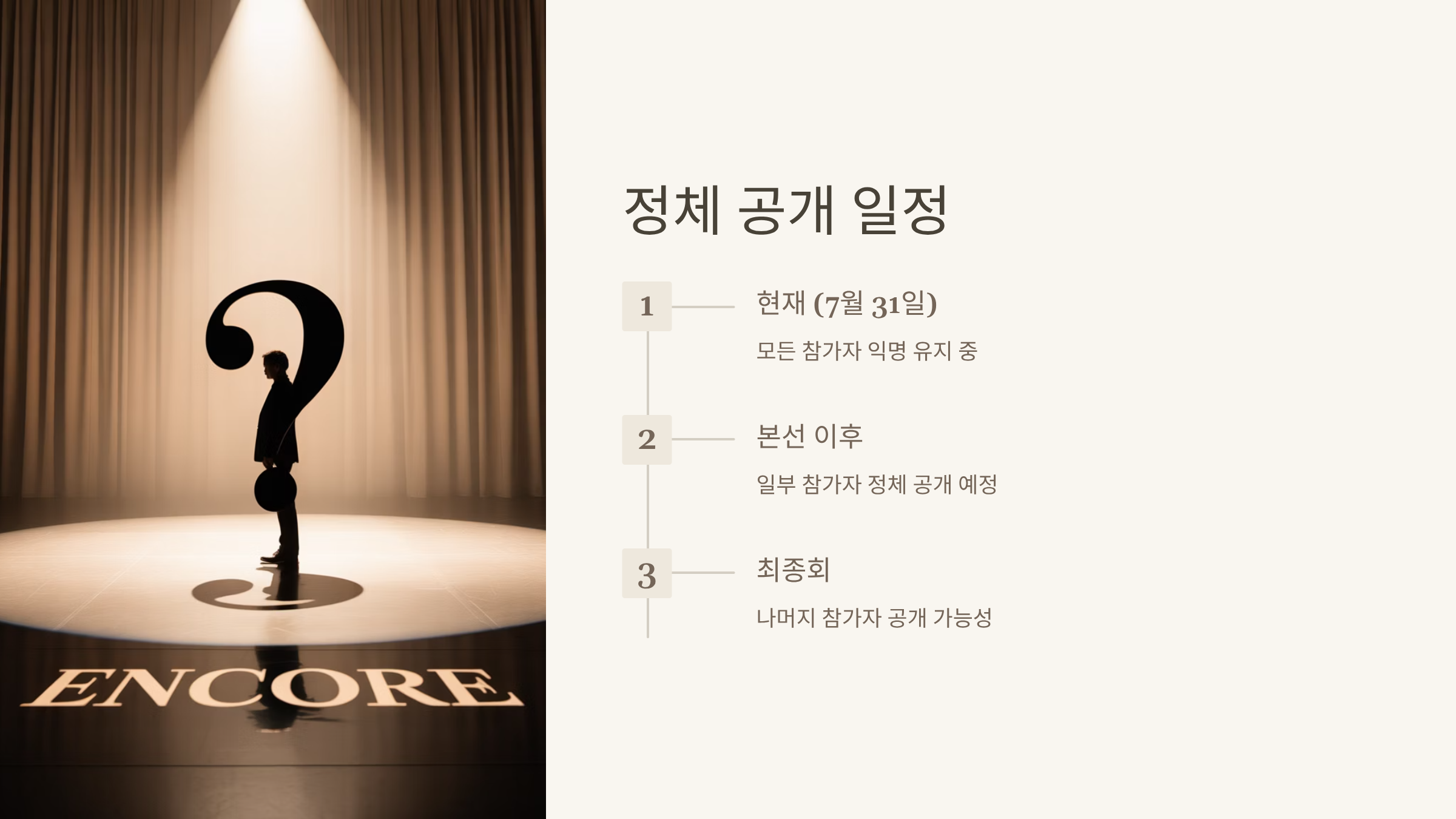 제작진은 향후 본선이나 최종 무대 이후 일부 정체를 공개할 예정이라고 밝혔습니다.