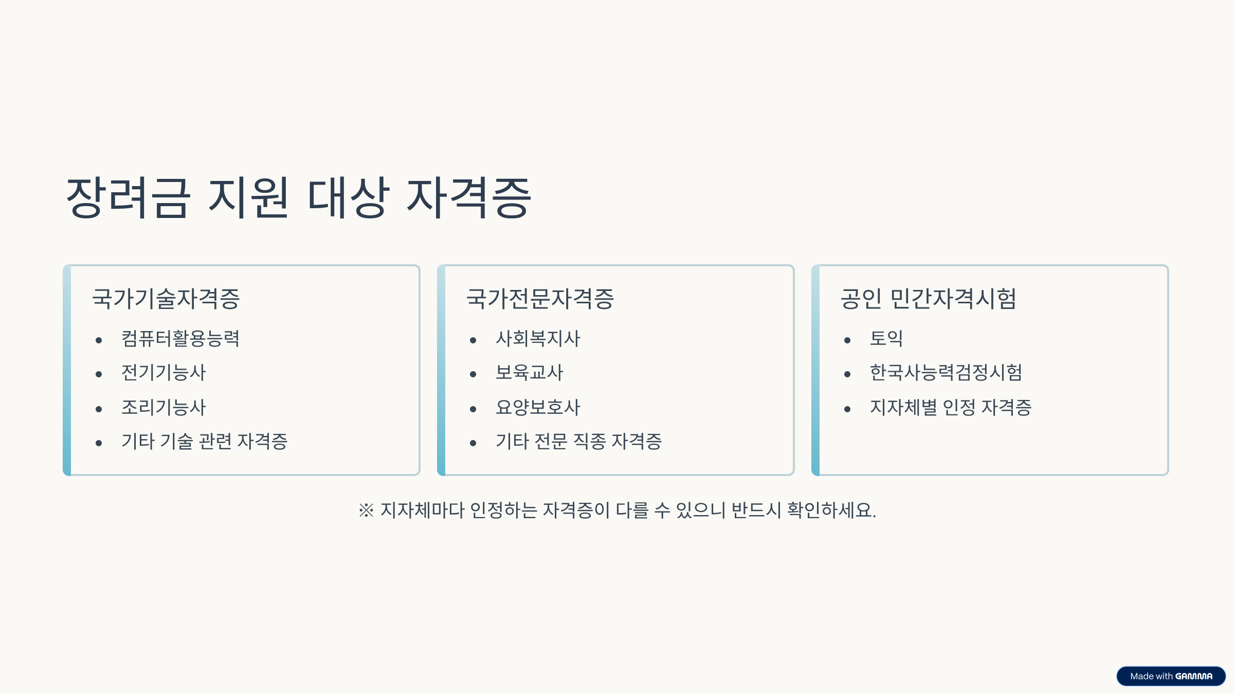 혹시 지금 자격증 공부 중이시라면, 합격 후 장려금을 꼭 챙겨보세요.