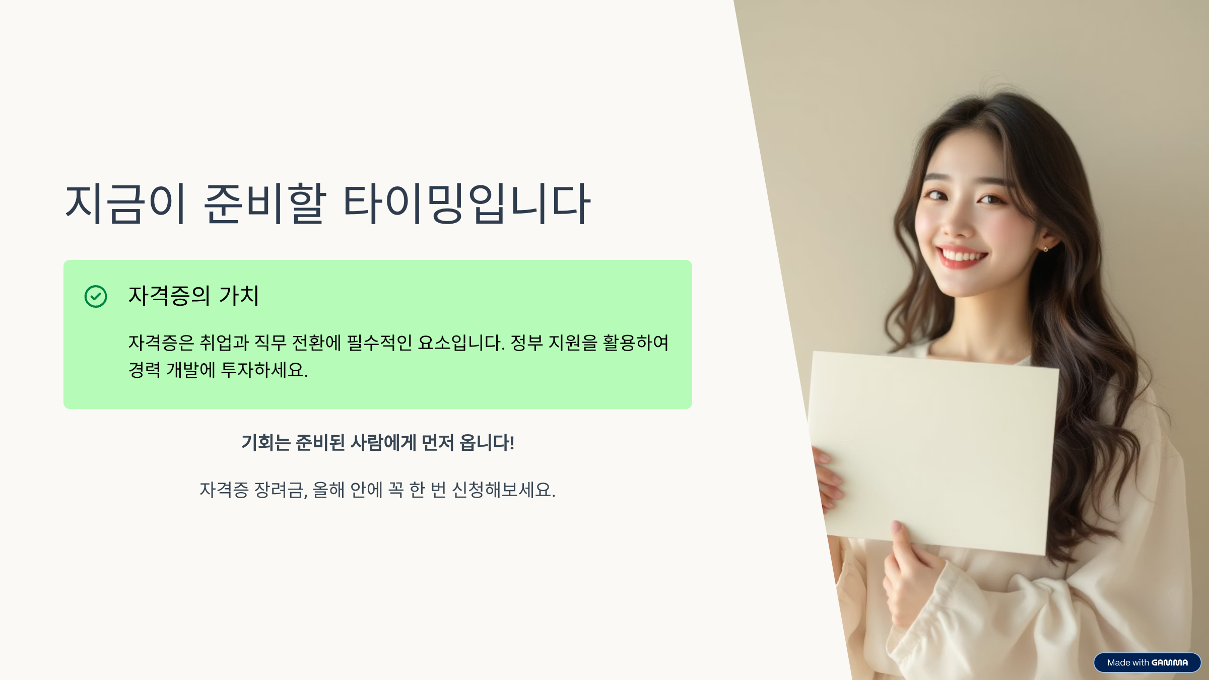 취업 준비나 커리어 전환을 고민 중이라면, 자격증 취득 장려금 제도를 꼭 확인해보세요.