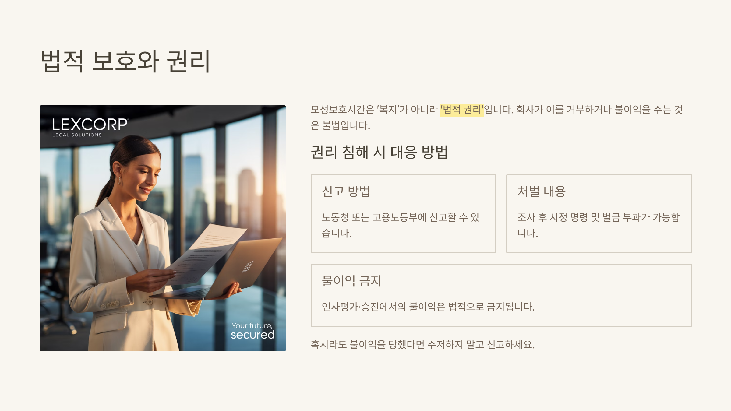 모성보호시간은 ‘복지’가 아니라 ‘법적 권리’입니다.