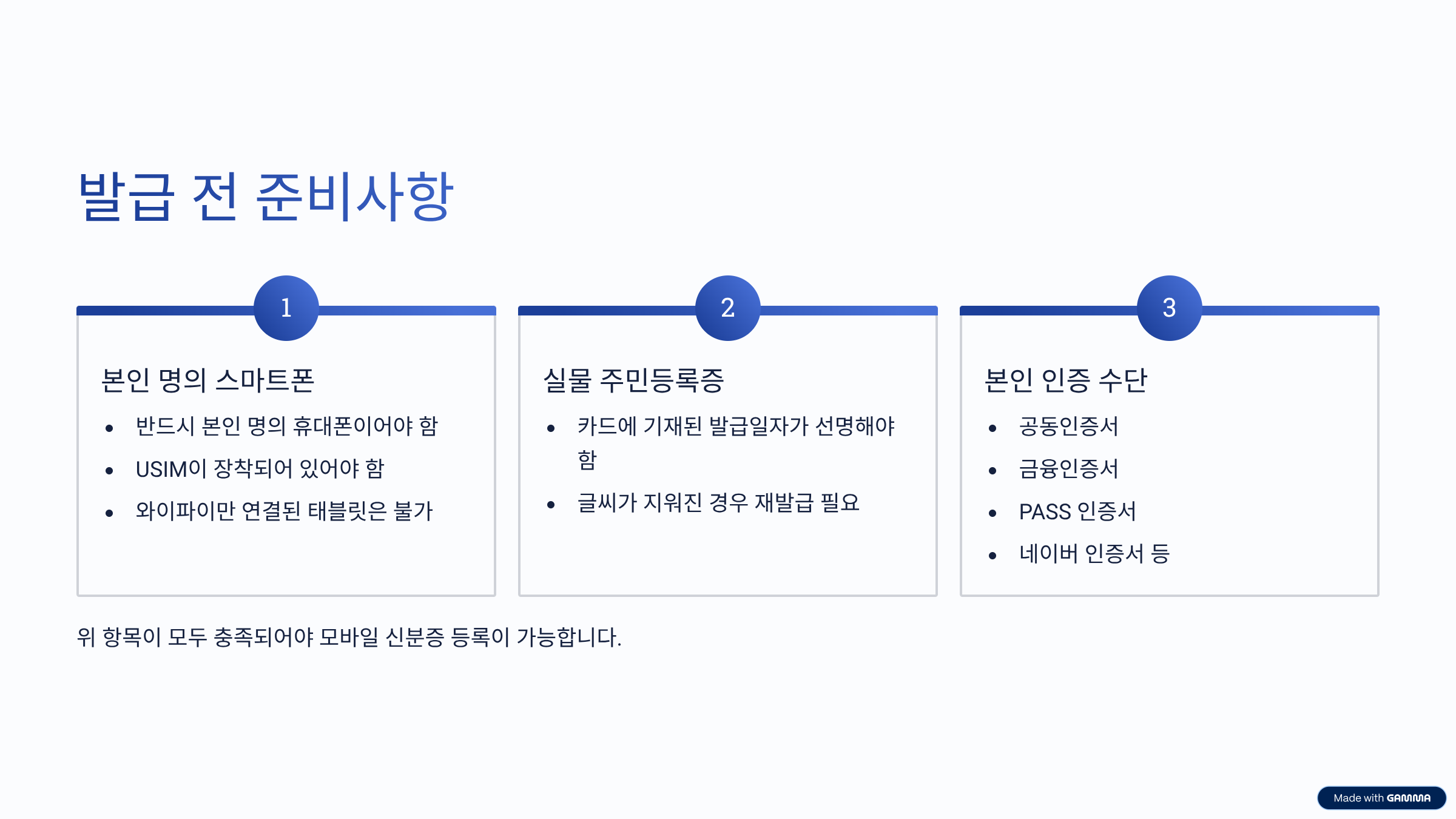 - 인증 수단이 없다면 미리 발급받아두는 게 좋아요.