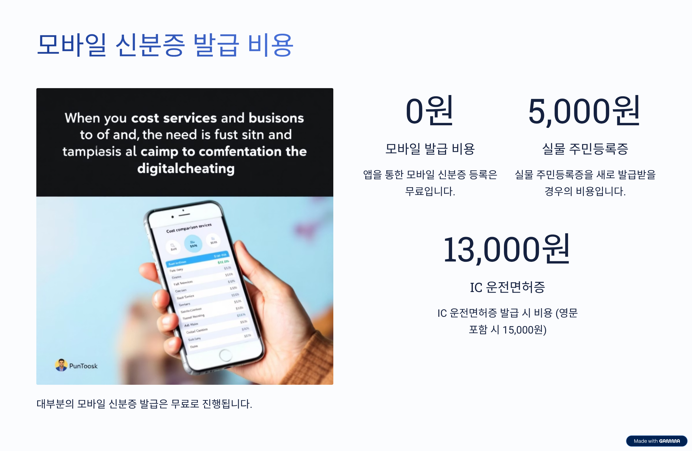 요약하자면, 스마트폰 등록 과정은 무료지만, 실물 신분증 준비 과정에서 약간의 비용이 발생할 수 있다는 점만 기억하시면 됩니다.