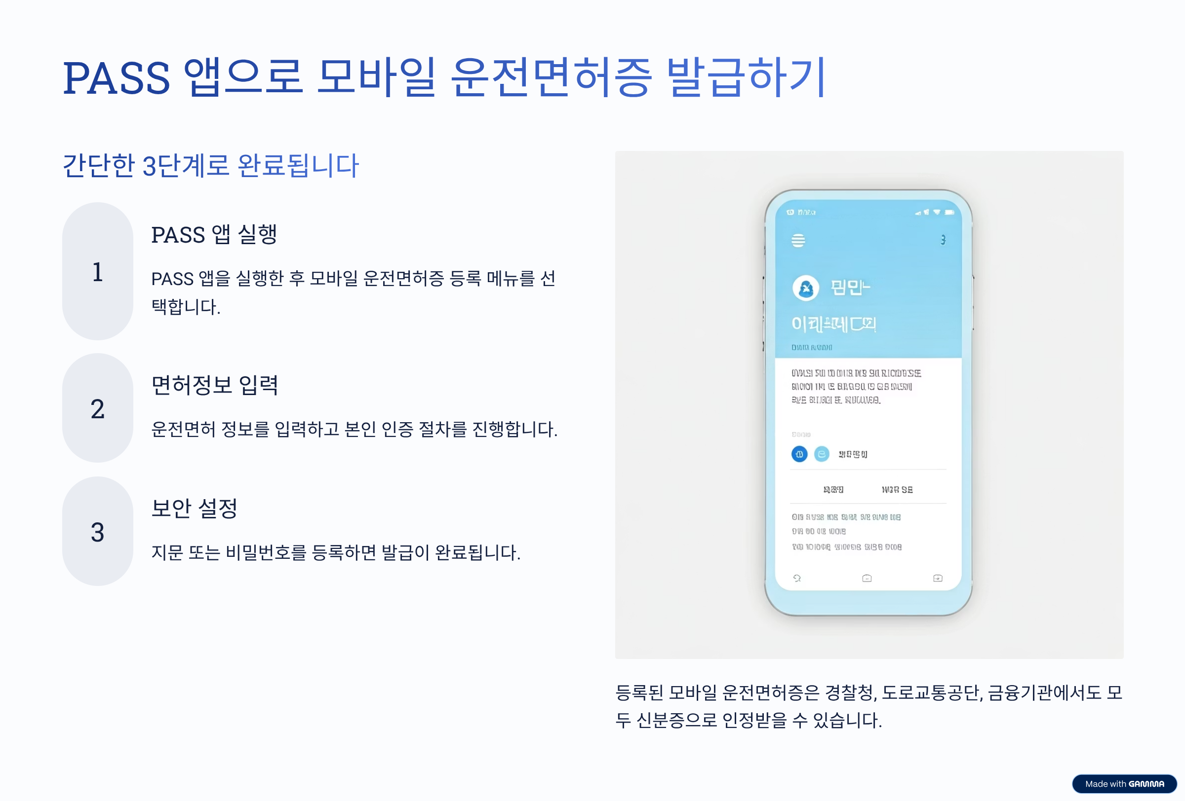 - PASS 모바일 운전면허증: 운전 자격 증명 외에도 신분 확인용으로 폭넓게 사용 가능