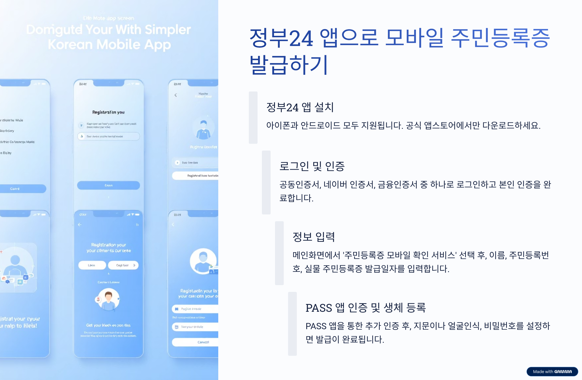 가장 많이 사용되는 방식은 정부24 앱을 통한 모바일 주민등록증 발급이에요.