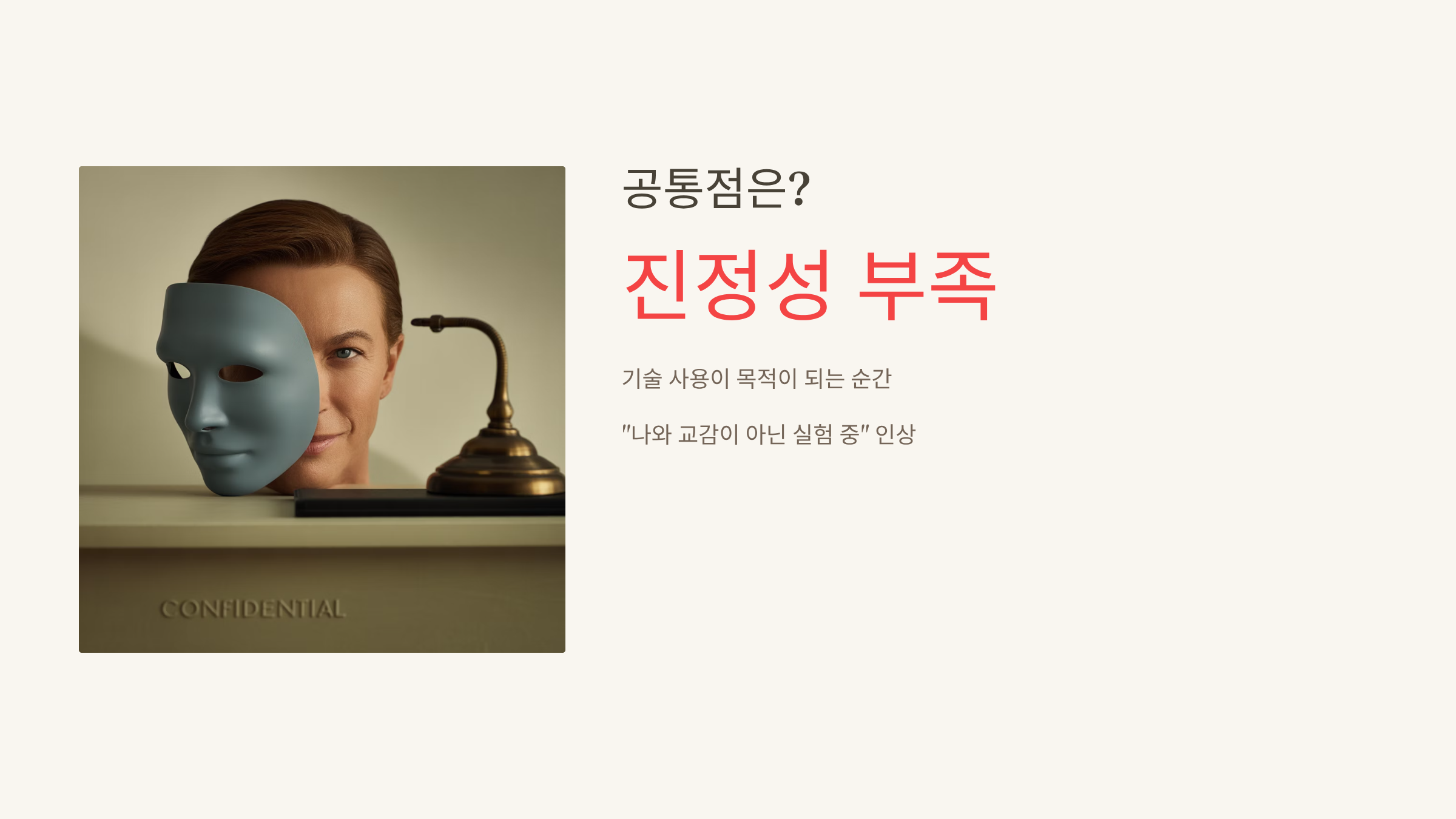 SNS 시대에는 표정과 말투, 대화의 진심 여부가 실시간으로 드러나기 때문에, 과한 연출은 금방 티가 납니다.