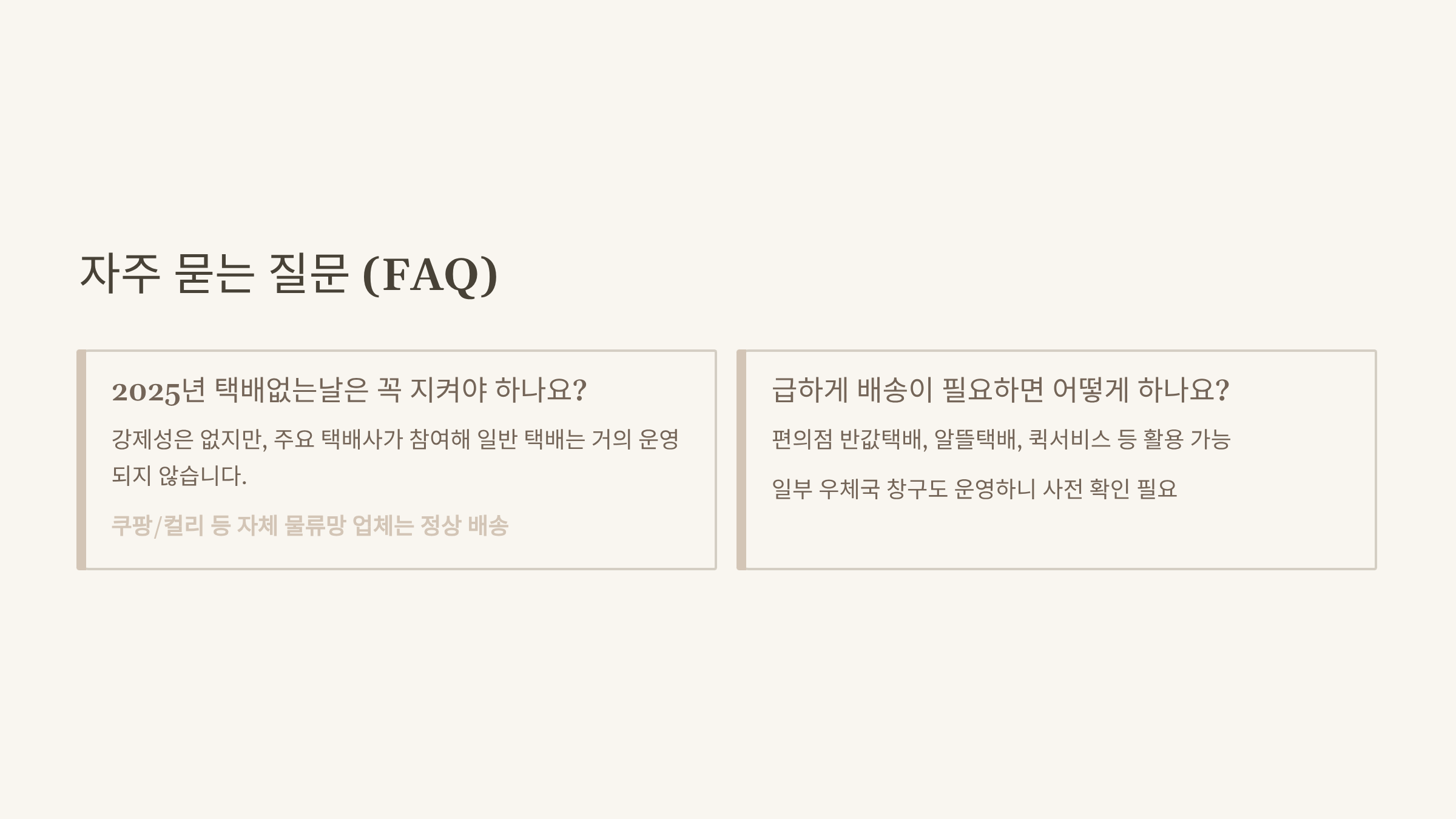 다가오는 2025년 택배없는날, 미리 준비하면 불편 없이 보낼 수 있어요.