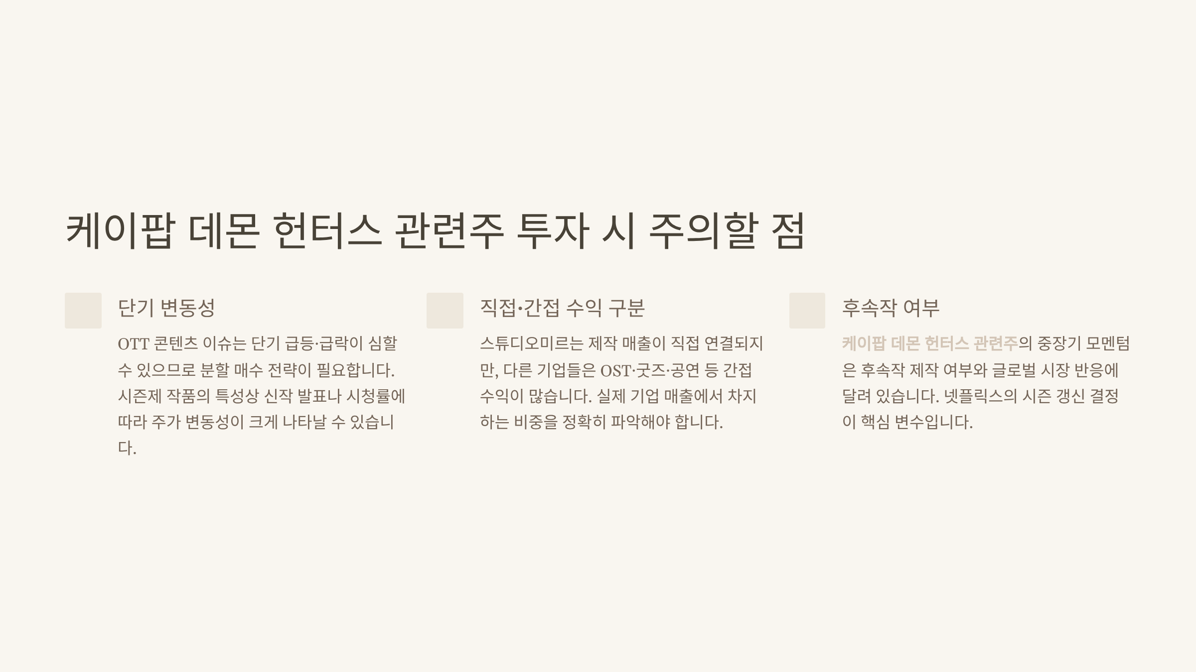 케이팝 데몬 헌터스 관련주 투자 시 주의할 점