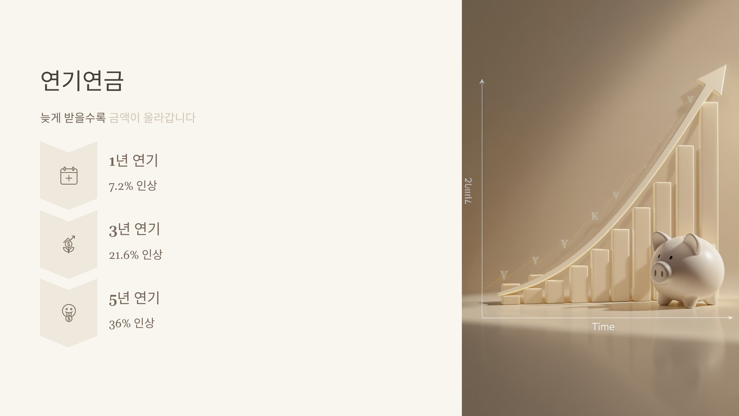 연기연금: 늦게 받을수록 금액이 올라갑니다