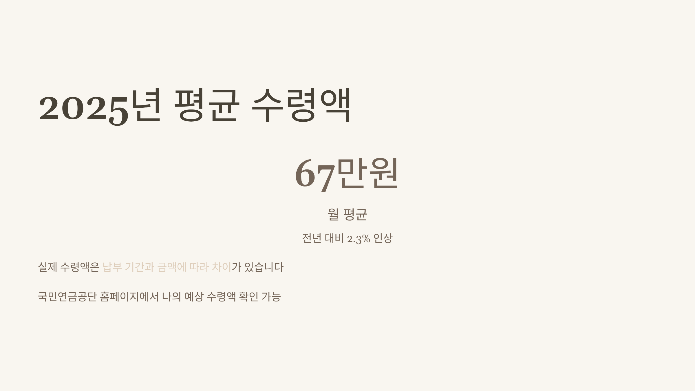 다만, 실제 수령액은 개인의 납부 기간, 납부 금액에 따라 차이가 커요.